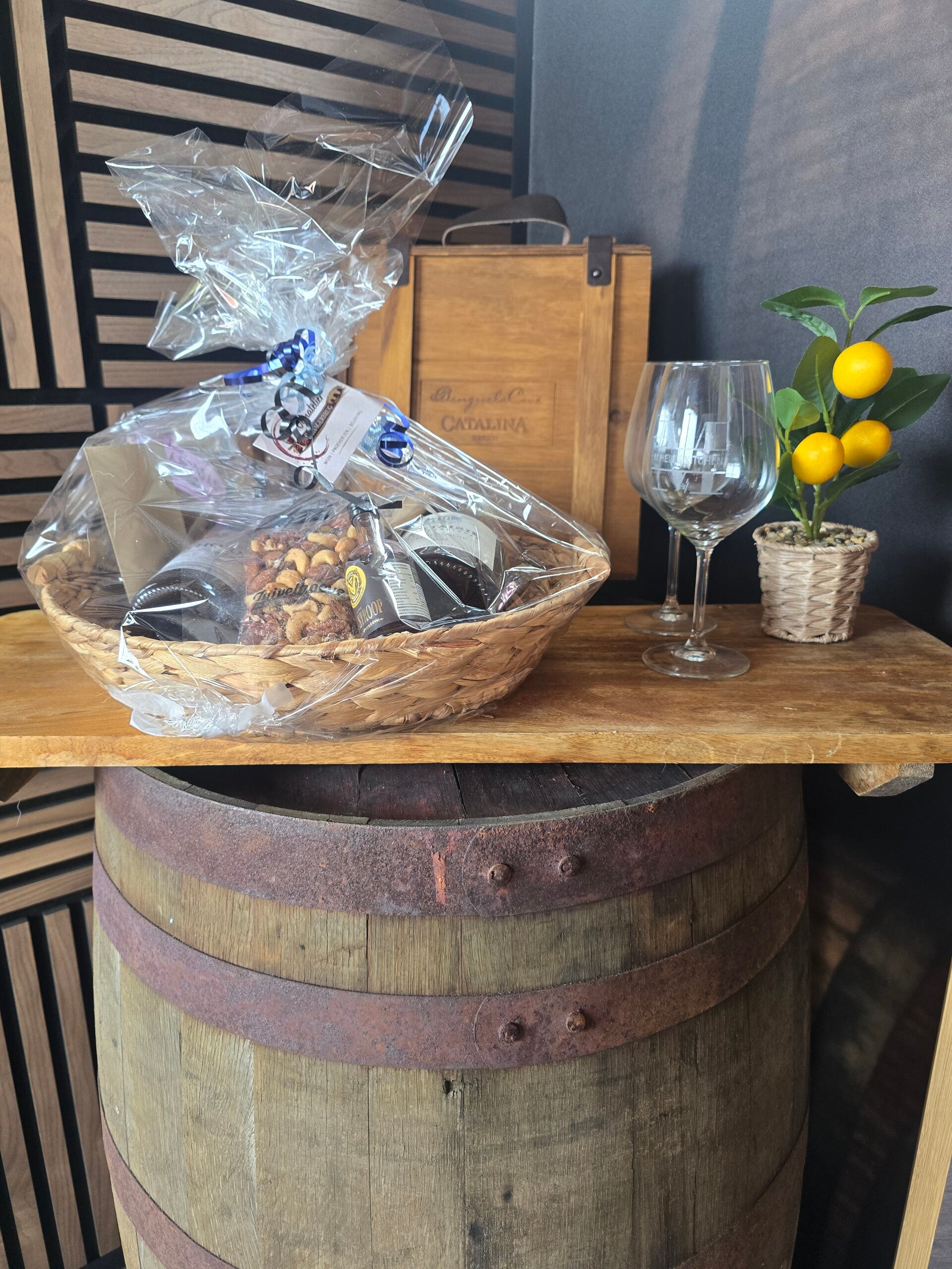 Een pakket gevuld met 2 wijnen (wit, rood of roze) Bijpassende kazen, kaasdips en nootjes